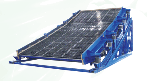 由于受承載極限轉(zhuǎn)速的限制及篩框結(jié)構(gòu)強(qiáng)度的影響,目前國內(nèi)的傳統(tǒng)振動篩不易做到高頻化、大型化。等厚分段篩分為多段篩分單元,各篩分單元分別獨(dú)立振動,使得各篩分單元均可實現(xiàn)較大的振動強(qiáng)度,大振動強(qiáng)度可大幅度提高振動篩的生產(chǎn)率和篩分效率,同時使篩子實現(xiàn)了大型化。各篩分單元的獨(dú)立振動,對機(jī)架的振動得以分散,可降低整機(jī)的振動強(qiáng)度,由于等厚分段篩在設(shè)計原理上所具有的優(yōu)點(diǎn),使得等厚分段篩具有使用壽命長,噪聲低,對廠房影響小的特點(diǎn),是一種環(huán)保型篩分設(shè)備。