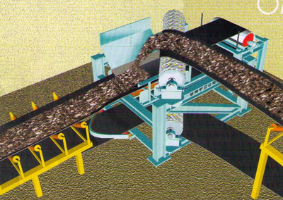ZX型帶式輸送機(jī)轉(zhuǎn)向裝置源自中國(guó)礦大,經(jīng)過(guò)多年的廣泛應(yīng)用,該項(xiàng)技術(shù)已處于成熟應(yīng)用階段。轉(zhuǎn)向裝置的應(yīng)用范圍很廣,尤其適合煤礦進(jìn)下彎曲的運(yùn)輸巷道中,可以使帶式輸送機(jī)實(shí)現(xiàn)水平轉(zhuǎn)彎、上下轉(zhuǎn)彎、組合轉(zhuǎn)彎、上下變坡運(yùn)行(在上下變坡運(yùn)行中可以實(shí)現(xiàn)壓帶功能,防止產(chǎn)生飄帶)。實(shí)現(xiàn)同樣的功能,原需要多臺(tái)皮帶機(jī)搭接方式進(jìn)行輸送,現(xiàn)采用該裝置一機(jī)便可達(dá)到換向轉(zhuǎn)向目的,可實(shí)現(xiàn)減少設(shè)備投資、節(jié)省能源、減少安裝工作量,減少電控操作等。