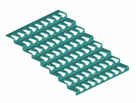 階梯篩板結(jié)構(gòu)特點(diǎn): 階梯篩板的篩框采用輕鋼骨架,篩面采用優(yōu)質(zhì)鋼板,通過沖壓、折彎等多道工序加工而成。階梯篩板不但有較好的耐磨性和較高的韌性,其突出的優(yōu)點(diǎn)是其篩孔為非平面篩孔,經(jīng)過特殊設(shè)計(jì)的篩孔可以完全消除物料堵孔現(xiàn)象,生產(chǎn)效率高,分級(jí)效果好,具有廣泛的實(shí)用性。采用階梯篩板,可大大降低每個(gè)工作日后的振動(dòng)篩面清理工作量。 主要適用于原煤分級(jí)(25mm以上)。
