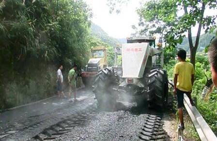 懷化市2013年的兩段冷再生工程分別是G320國道洪江段和S222省道靖州段,兩段工程總大修里程超過60公里。在項目調(diào)研階段,我公司會同河南隆裕工程公司經(jīng)實地考察,認為兩段路雖屬干線公路,但路基的損壞較嚴重,路基強度屬中等強度,冷再生機施工強度不高,鑒于兩段路均屬丘陵山地,坡道多,彎道多,施工管理難度較大,需要加強現(xiàn)場管理。