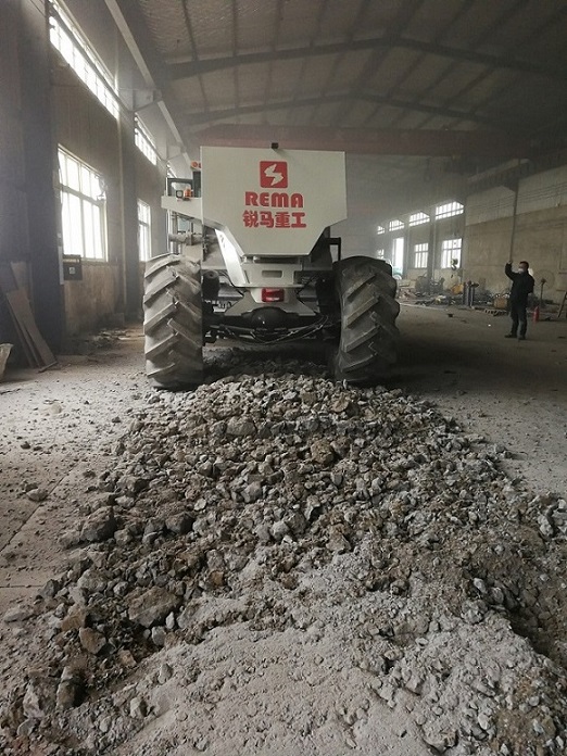 2017年歲末,我路拌公司研發(fā)的新產(chǎn)品RS600水泥路面破碎機(jī)樣機(jī)下線,并成功完成了水泥路面的破碎試驗,試驗的結(jié)果讓開發(fā)人員驚喜,實際工作效果超出預(yù)期,報廢的車間水泥路面強(qiáng)度雖然高,但破碎機(jī)工作穩(wěn)定,堅硬的水泥路面輕松破碎。